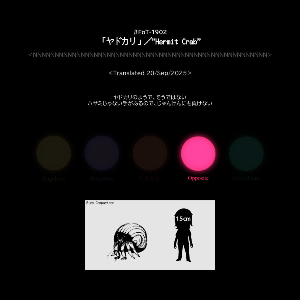 #FoT-1902:「ヤドカリ」/”Hermit Crab” カテゴリー: 1900-1999 ヤドカリのようで、そうではないハサミじゃない手があるので、じゃんけんにも負けない X–N–X X–N–X ↡Shareable #1900-1909 2025年9月20日