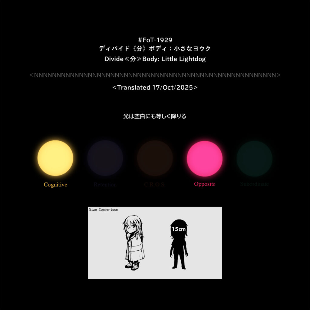 #FoT-1929:ディバイド《分》ボディ:小さなヨウク/Divide≪分≫Body: Little Lightdog カテゴリー: 1900-1999 光は空白にも等しく降りる X–N–X X–N–X ↡Shareable #1920-1929#陽狗型 2025年10月17日