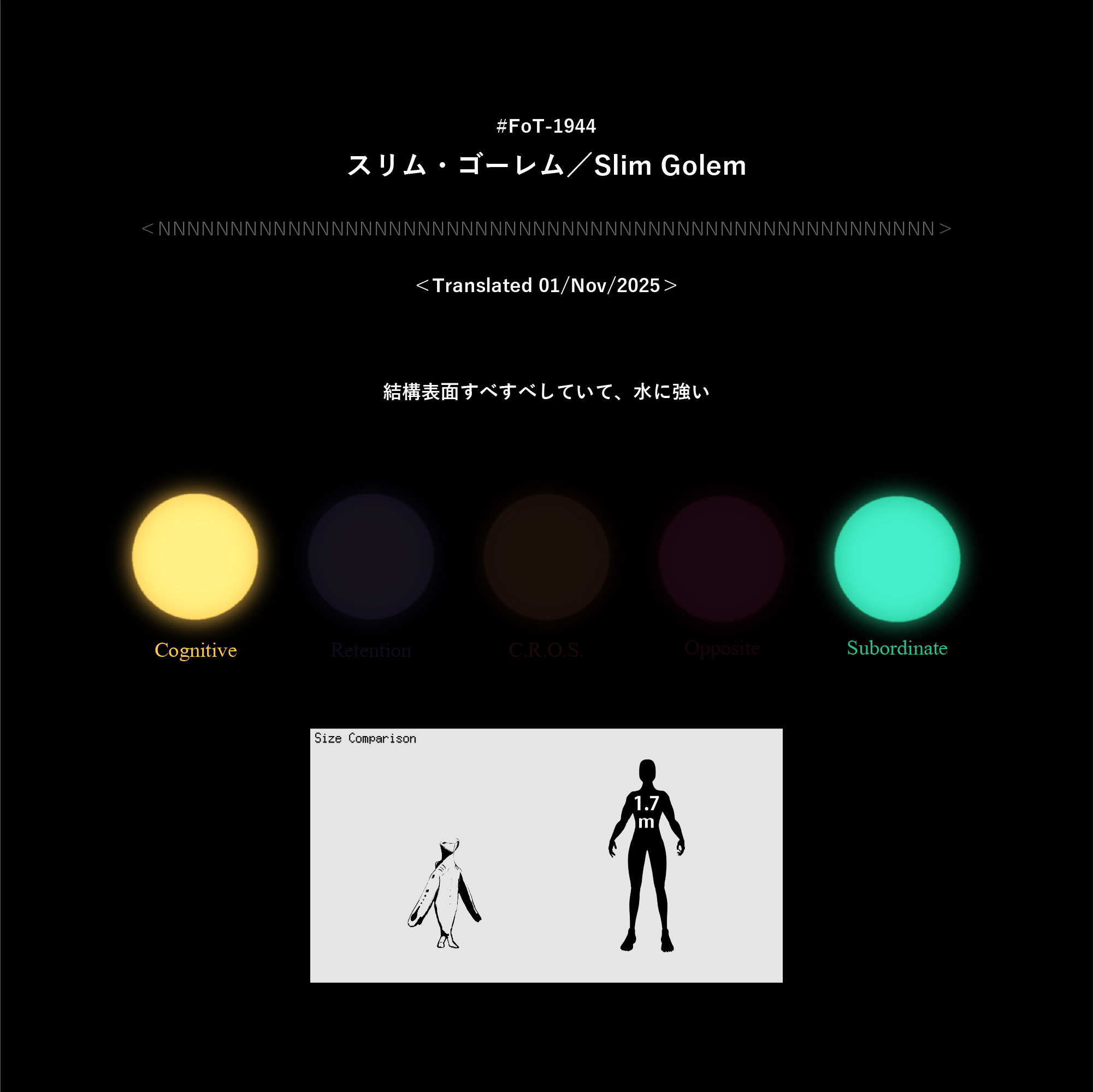 #FoT-1944:スリム・ゴーレム/Slim Golem カテゴリー: 1900-1999 結構表面すべすべしていて、水に強い X–N–X X–N–X ↡Shareable #1940-1949 2025年11月1日
