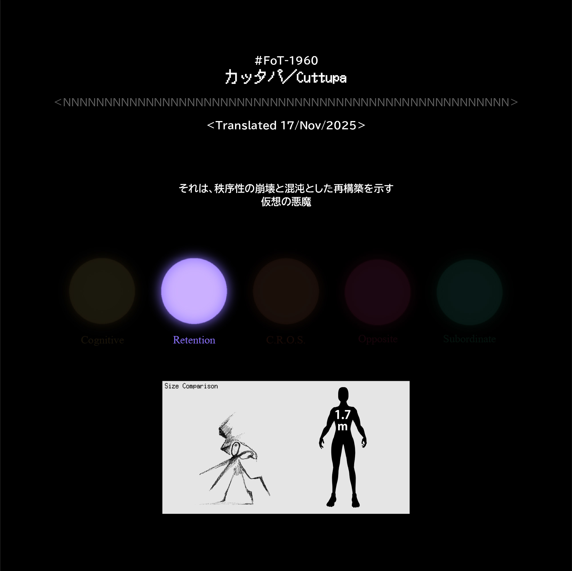 #FoT-1960:カッタパ/Cuttupa カテゴリー: 1900-1999 それは、秩序性の崩壊と混沌とした再構築を示す仮想の悪魔 X–N–X X–N–X ↡Shareable #1960-1969 2025年11月17日