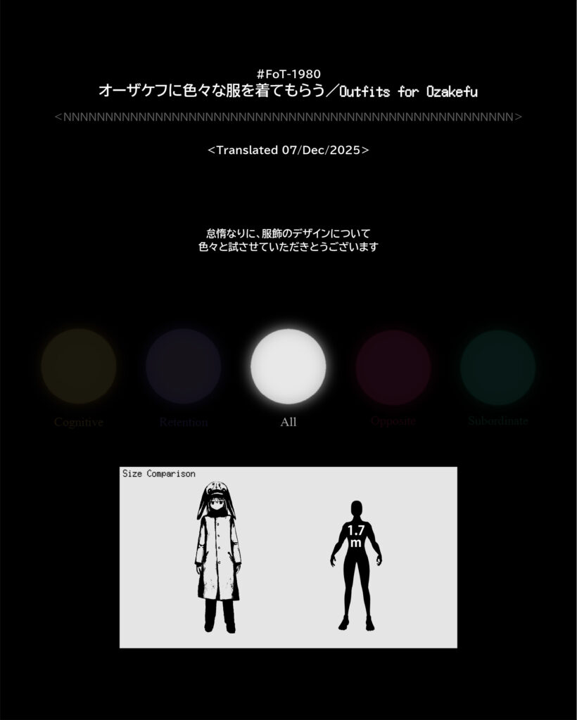 #FoT-1980:オーザケフに色々な服を着てもらう/Outfits for Ozakefu カテゴリー: 1900-1999 怠惰なりに、服飾のデザインについて色々と試させていただきとうございます X–N–X X–N–X ↡Shareable #1980-1989#素狗型 2025年12月7日