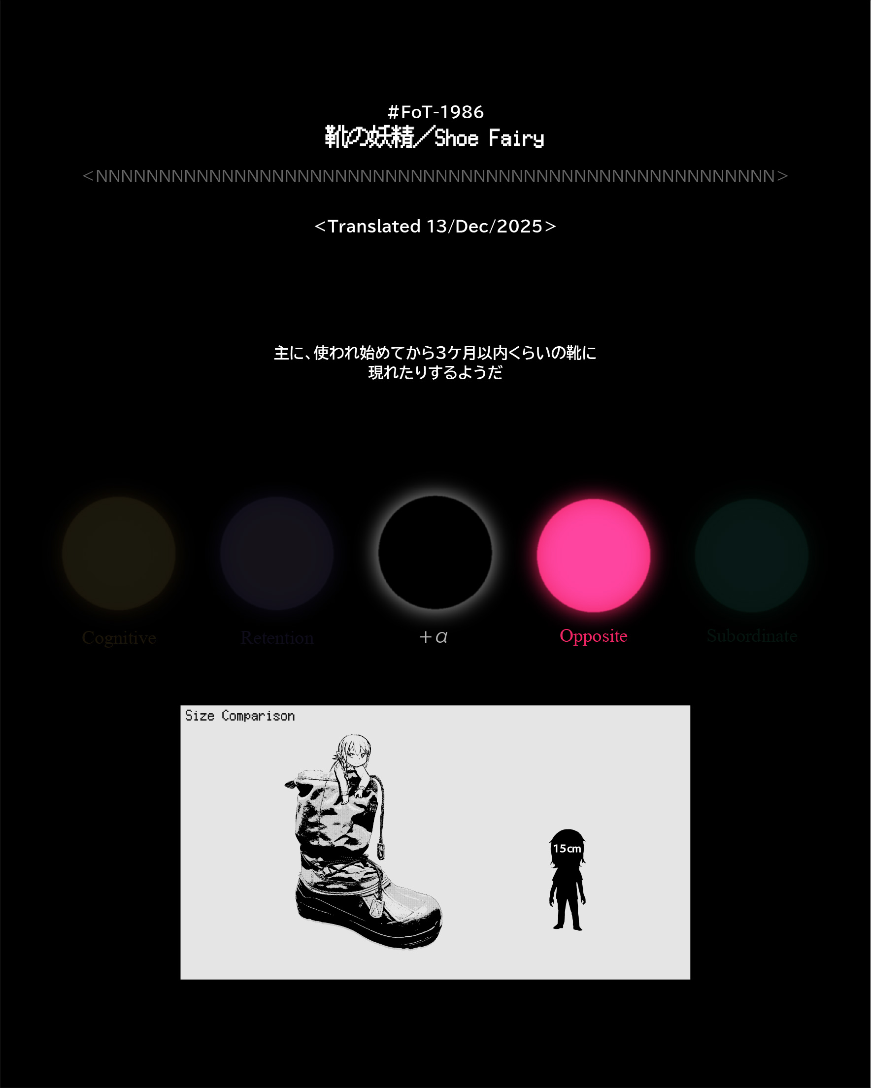 #FoT-1986:靴の妖精/Shoe Fairy カテゴリー: 1900-1999 主に、使われ始めてから3ケ月以内くらいの靴に現れたりするようだ X–N–X X–N–X ↡Shareable #1980-1989 2025年12月13日
