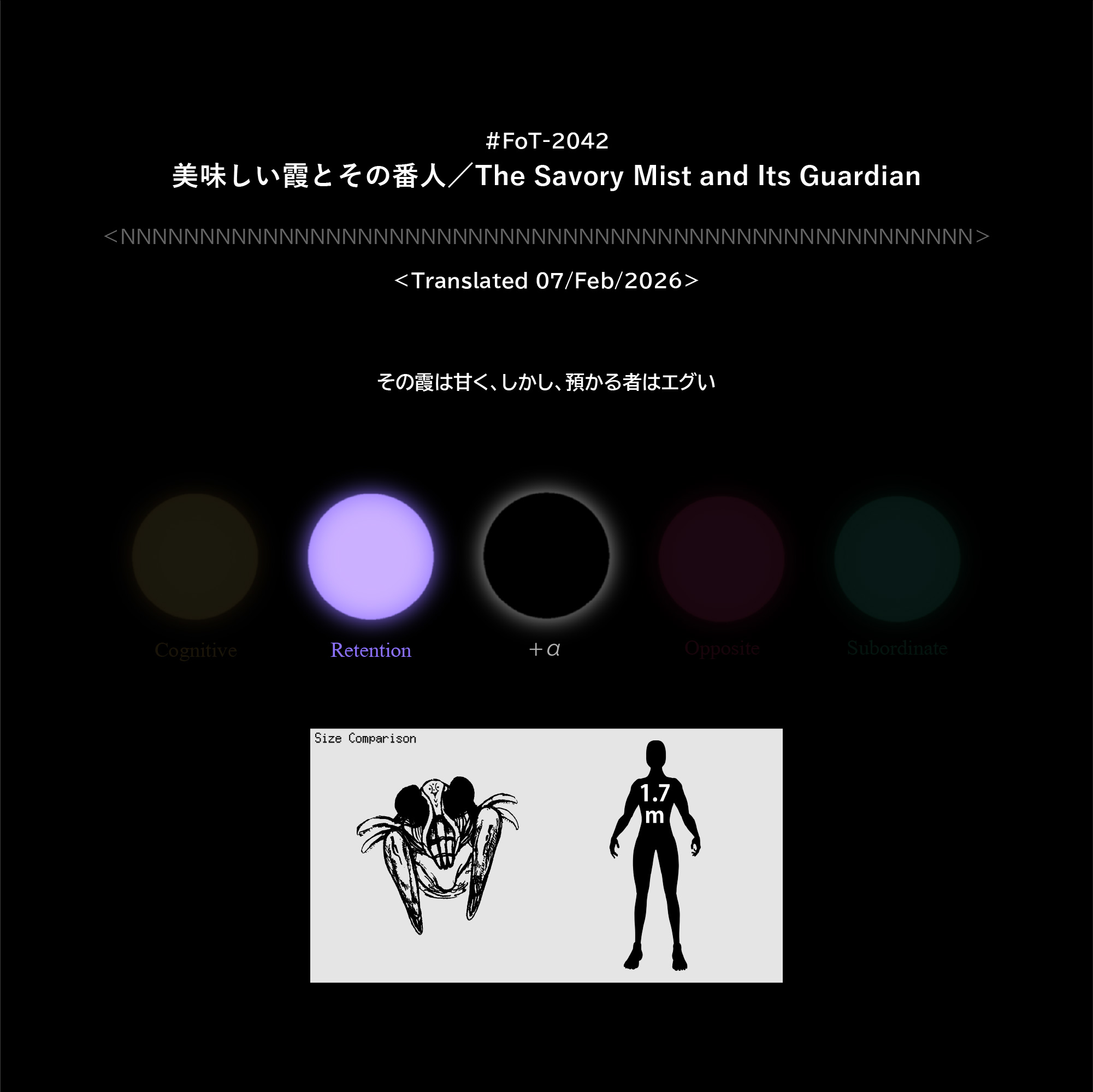 #FoT-2042:美味しい霞かすみとその番人/The Savory Mist and Its Guardian カテゴリー: 2000-2099 その霞は甘く、しかし、預かる者はエグい X–N–X X–N–X ↡Shareable #2040-2049 2026年2月7日