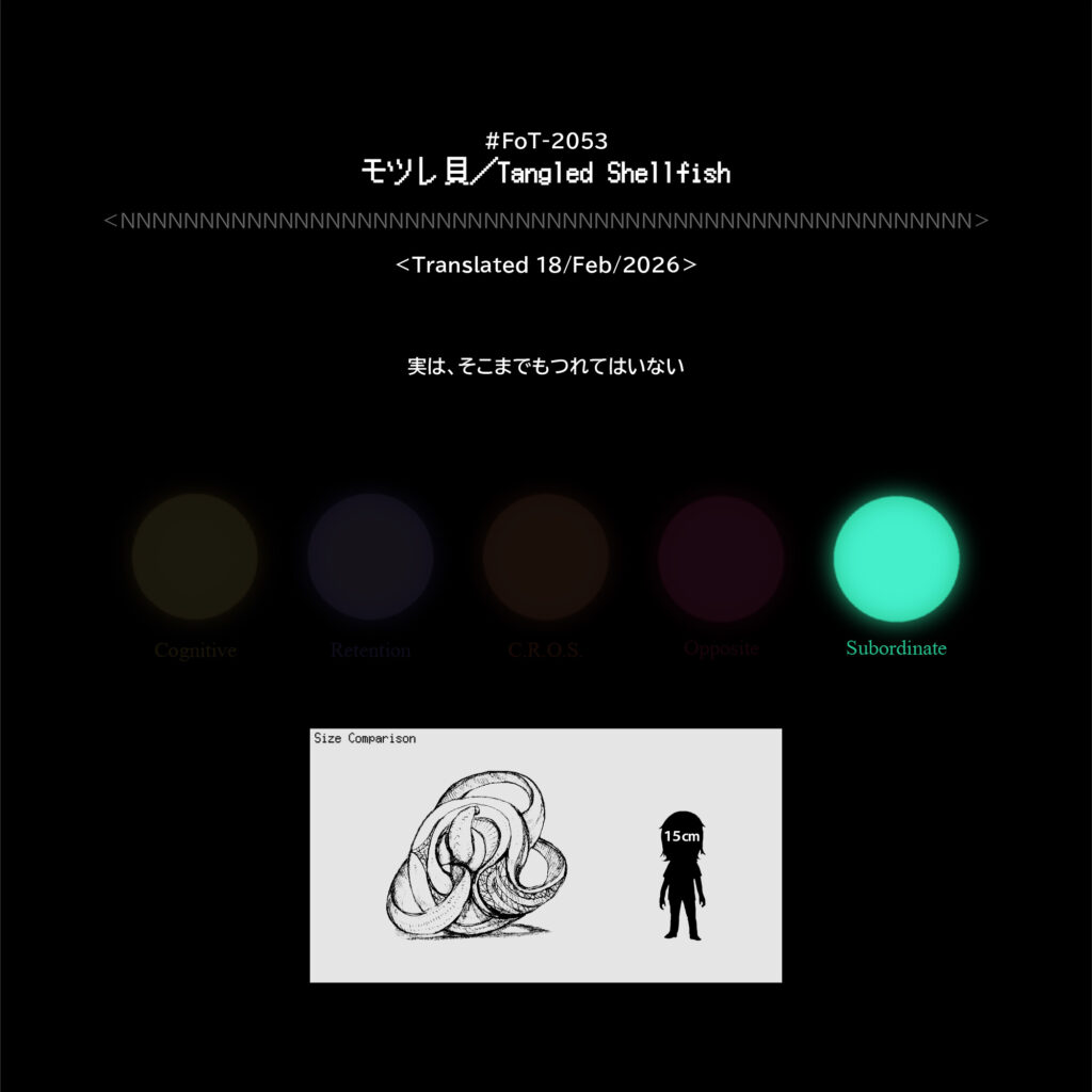 #FoT-2053:モツレ貝/Tangled Shellfish カテゴリー: 2000-2099 実じつは、そこまでもつれてはいない X–N–X X–N–X ↡Shareable #2050-2059 2026年2月18日