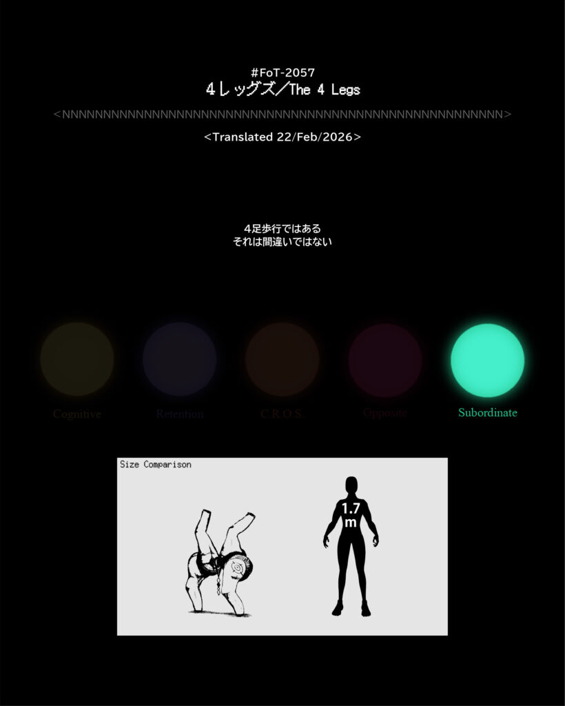 #FoT-2057:4レッグズ/The 4 Legs カテゴリー: 2000-2099 4足歩行ではあるそれは間違いではない X–N–X X–N–X ↡Shareable #2050-2059 2026年2月22日