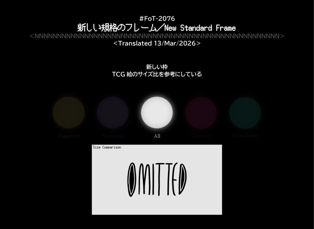 #FoT-2076:新しい規格のフレーム/New Standard Frame カテゴリー: 2000-2099 新しい枠TCG絵のサイズ比を参考にしている X–N–X X–N–X ↡Shareable #2070-2079#葉狗型 2026年3月13日