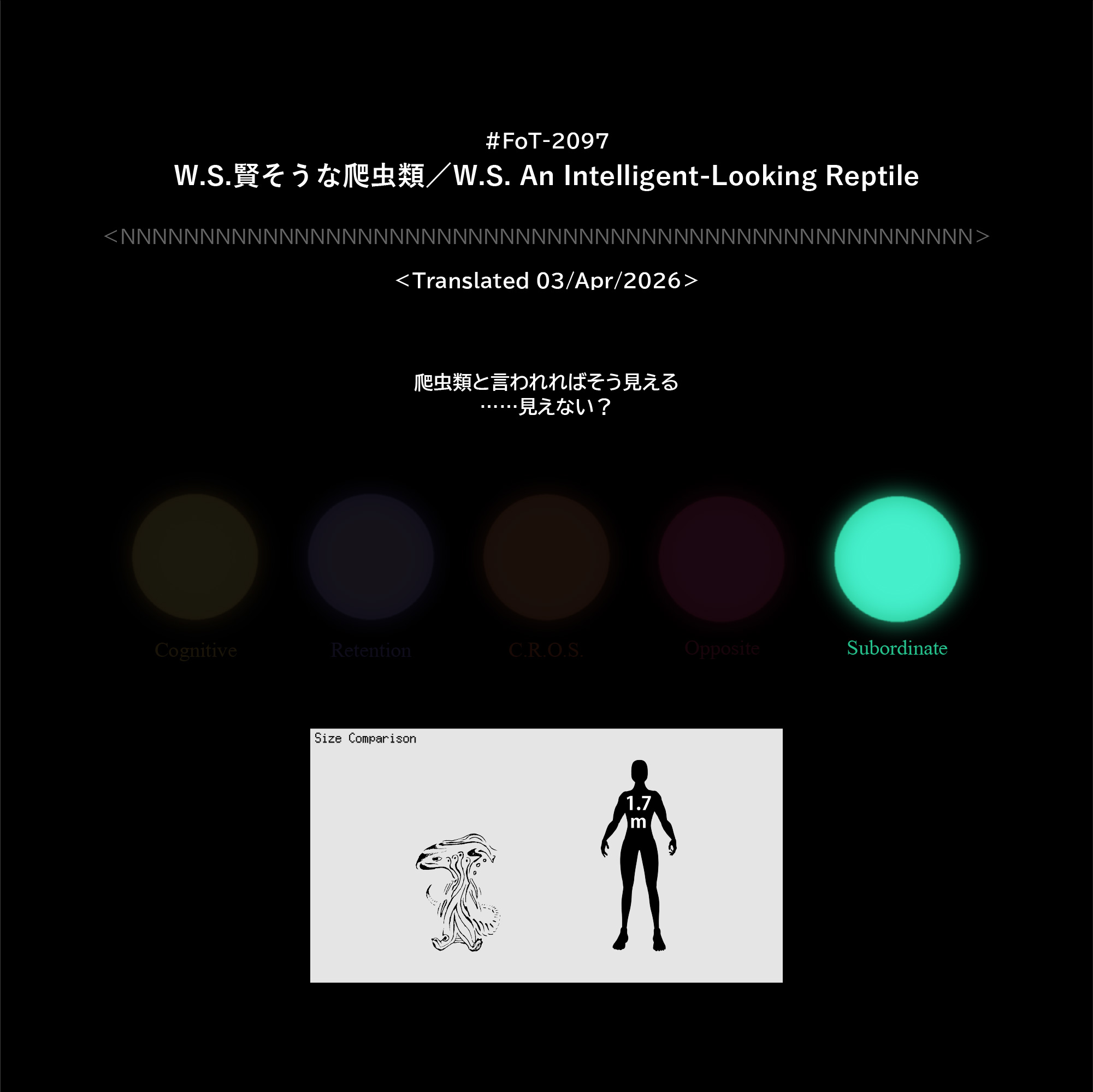 #FoT-2097:W.S.賢そうな爬虫類/W.S. An Intelligent-Looking Reptile カテゴリー: 2000-2099 爬虫類と言われればそう見える……見えない? X–N–X X–N–X ↡Shareable #2090-2099 2026年4月3日